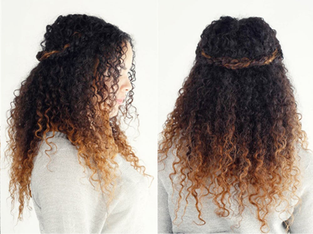 Braids and topknots are having a serious moment. Fortunately, you can mix both together and get the best of both trends. A braid will keep your curls back off your face and the topknot ensures a chic way to manage heavy strands. This works great for second, third, or even fourth day curls. A little dry shampoo will help boost the volume in your roots and give you that perfect tousled look.
